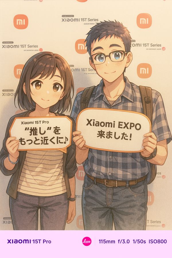 また会場ではこのXiaomi 15T Proを使って来場者を撮影し、その写真を貰えるというサービスもやっていましたので撮ってもらいました。実際の写真はご迷惑になるレベルですので、その写真をAIでアニメ風のタッチにしたものをアップしておきます。