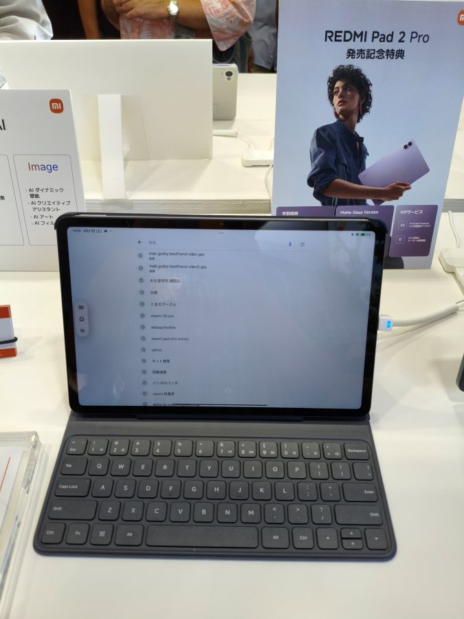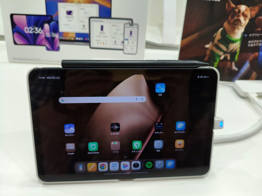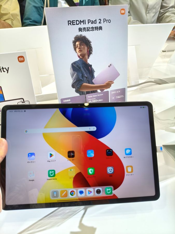 格安のREDMIブランドではない、社名を冠するXiaomiブランドのXiaomi Pad Miniです。8GB/256GBモデルで7万4980円、12GB/512GBモデルが9万3980円。全く安くはありません。これは高性能モデル扱いですね。AnTuTuスコアは260万~280万点ほどとのことで先日発売されたiPhone17Pro並みの性能ですのでむしろお買い得かも知れません。スタンドになる純正ケースは手を入れて片手で使えるようになっています。