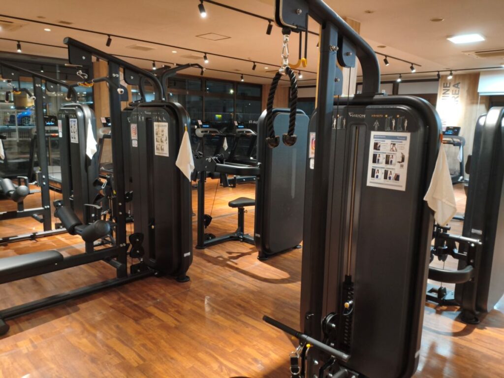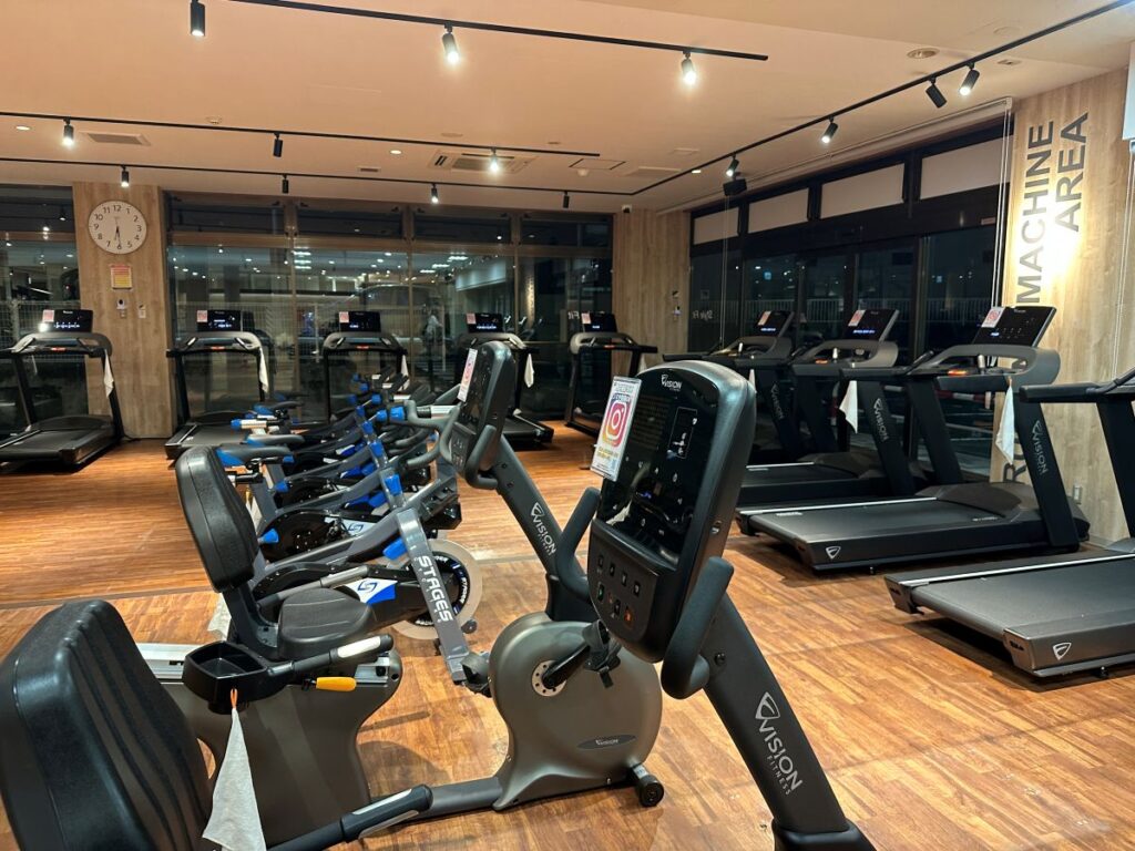 さて、オープン初日の夜に行ってみたのですが、まだオープンしたばっかりということで人も少なく快適です。全く無人のフィットネスジムもありますが、ここは9:00~13:00と18:00~21:00には人がいます。なので完全初心者の私でも機械の使い方を聞くことが出来ました。そしてとにかくフィットネスの機械が大量にあります。