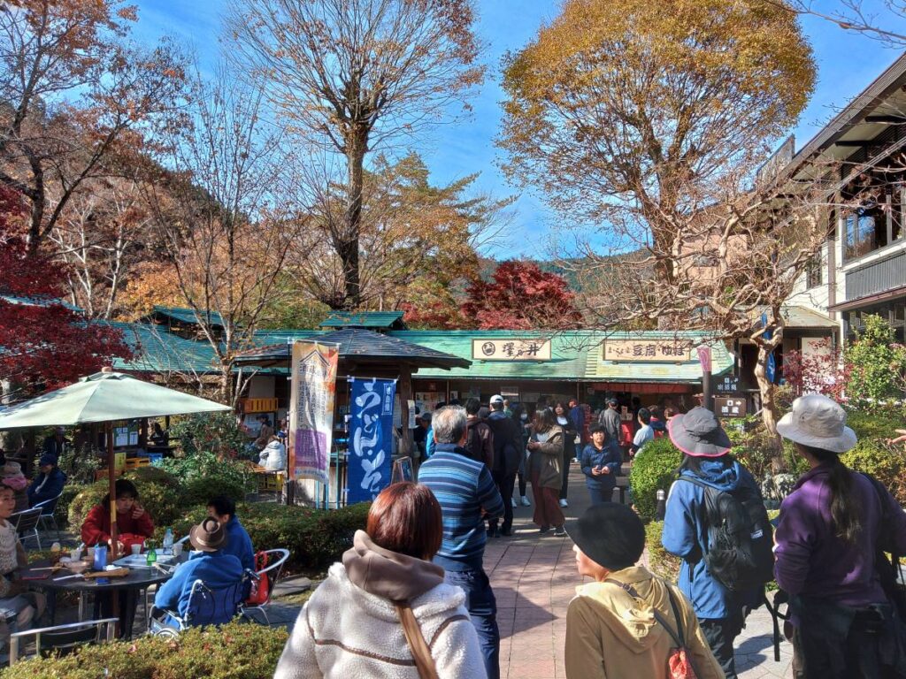 日本酒の澤乃井を醸造している酒蔵、小澤酒造さんのところがやっている所です。紅葉も見ごろということで、ここも普段より人は多めでした。