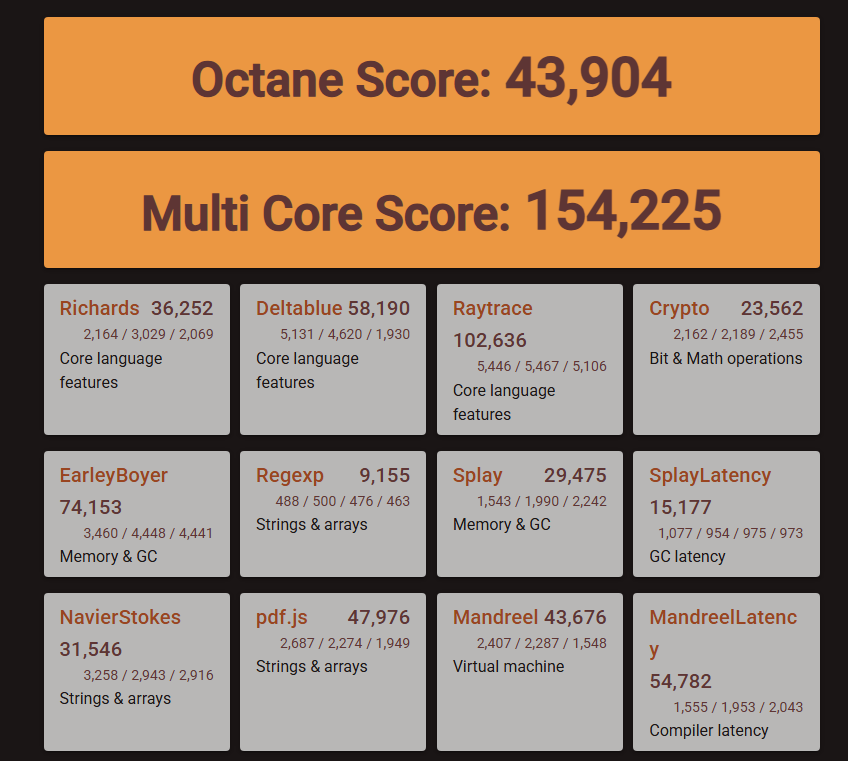 Goole Octane 2.0 オンラインベンチマーク